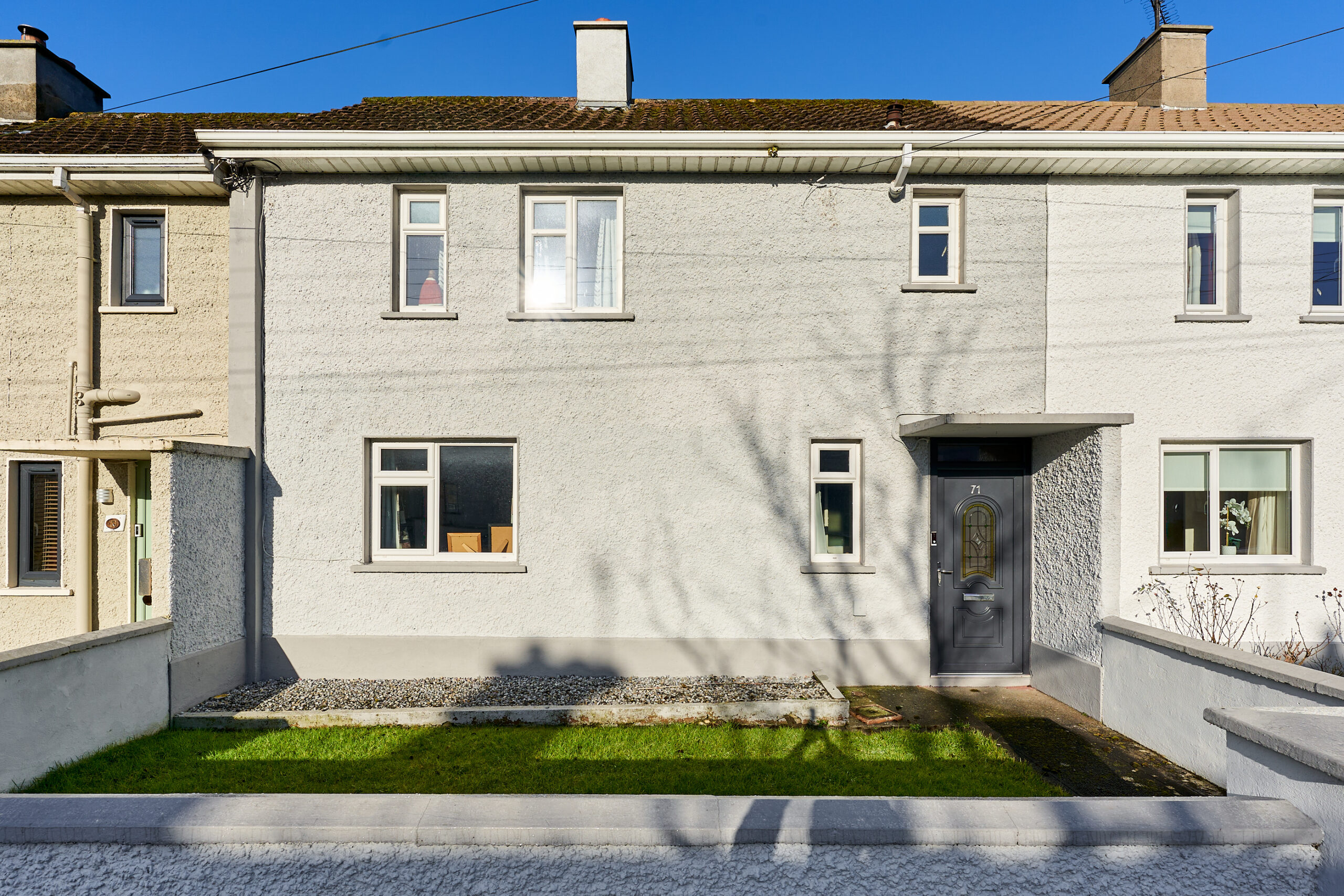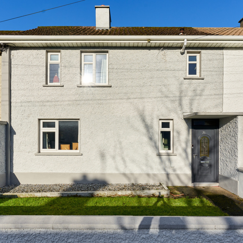 No. 71 Ginnell Terrace, N91 X3Y6, is a spacious two storey mid terrace 2 bed family home just 5 minutes’ walk from Mullingar Town Centre opposite St. Paul’s Church on the Delvin Road. This generous family home is in very good condition throughout and has further room for expansion if desired. Set back from the public road with a neat front garden, No .71 has the benefit of double glazed uPVC windows and doors, oil fired central heating, almost new kitchen, together with a large rear garden which extends c.25m.