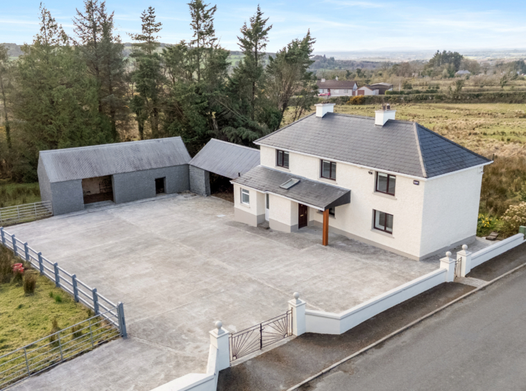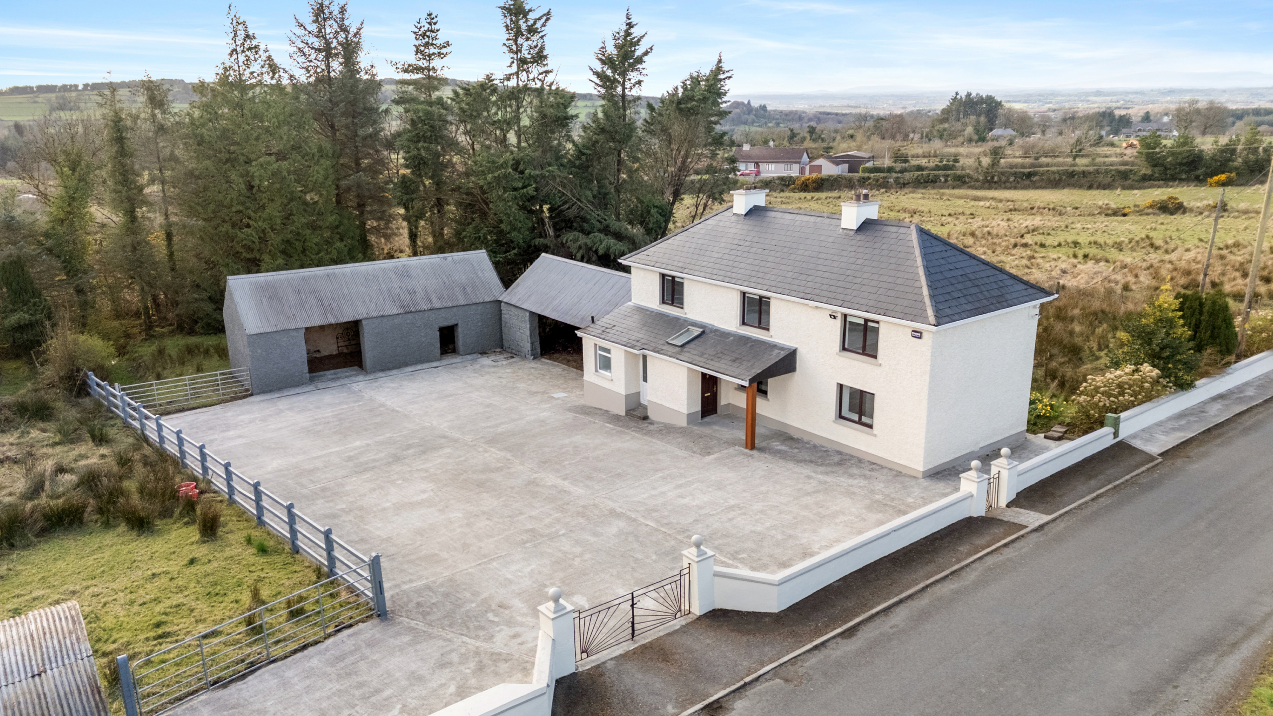 Aughadowry, N39 D3A8, is a beautiful detached 3 bed farmhouse style residence with a range of outbuildings and offering panoramic views of the surrounding countryside. Recently refurbished to a very high standard, this family home offers exceptional modern living accommodation extending to c.130 sq.m. and only a short distance from the villages of Ballinamuck, Aughnacliffe, Drumlish & Ballinalee.