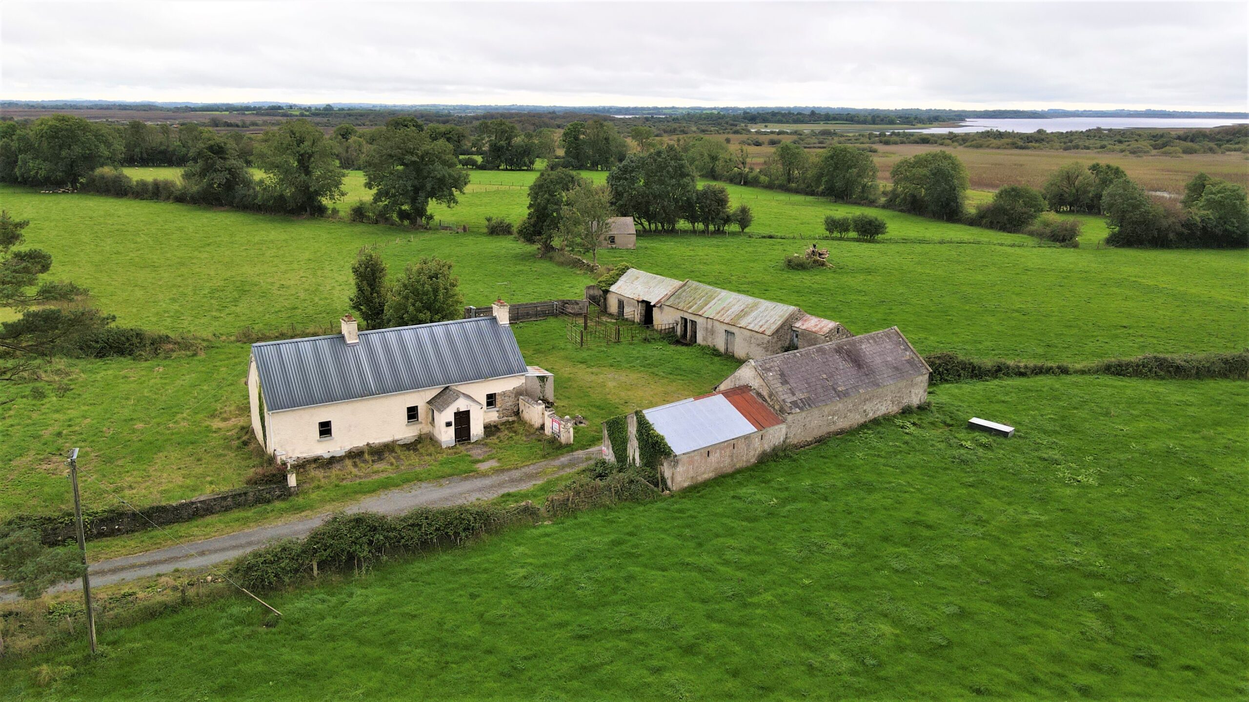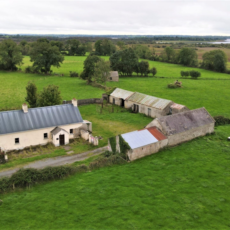 Traditional detached cottage set on c.65 acres of excellent fattening land, overlooking Lough Ree. The property with a range of outbuildings offers endless potential as a redevelopment project. The lands are laid out in neat tidy divisions, very well fenced for sheep & cattle and suitable for any farming enterprise.