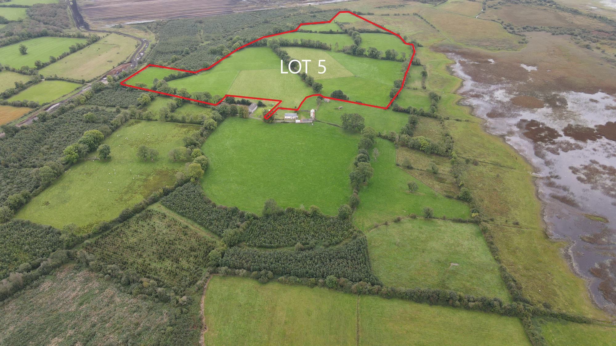Lot 1 – Cottage on c. 0.25 acres. Lot 2 – c.21.5 acres. Lot 3 – Cottage on c.21.75 acres. Lot 4 c. 8.5 acres. LOT 5 – c. 35 acres.