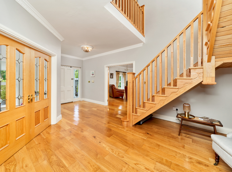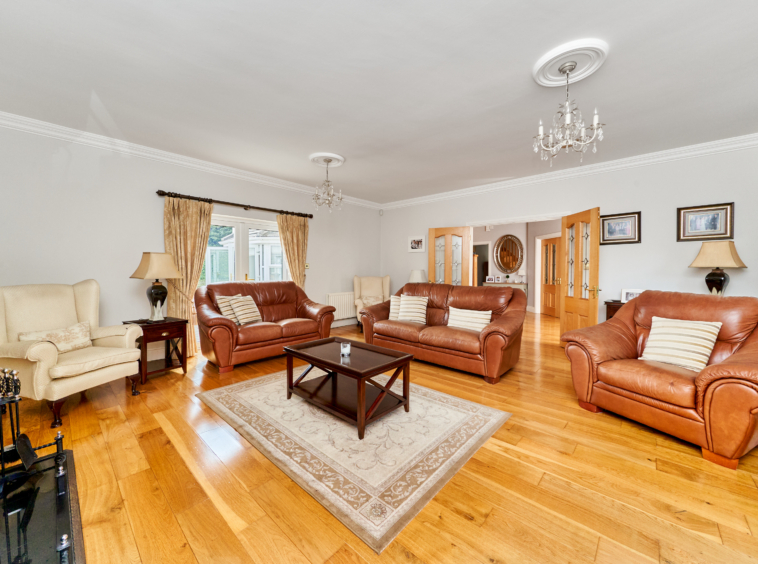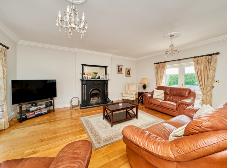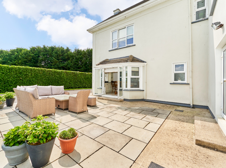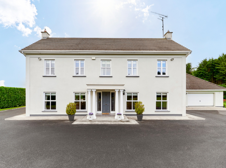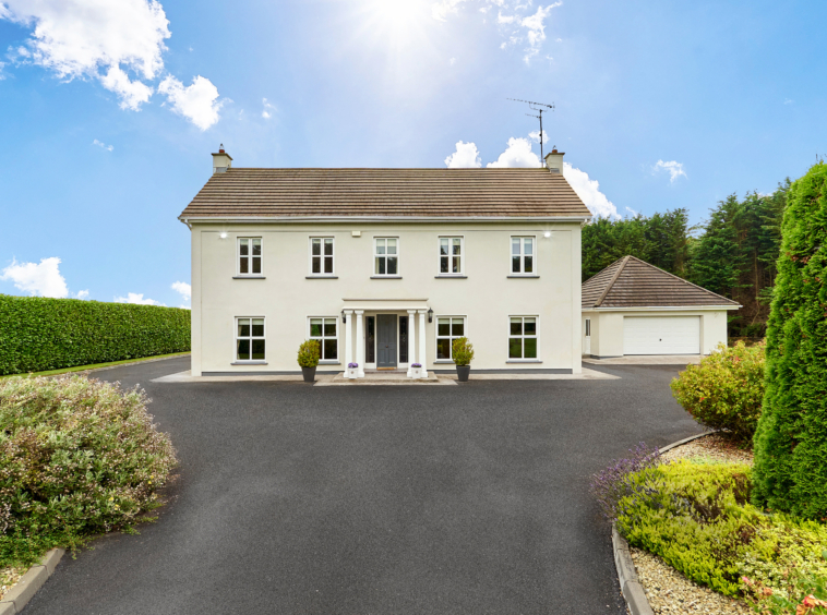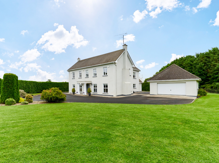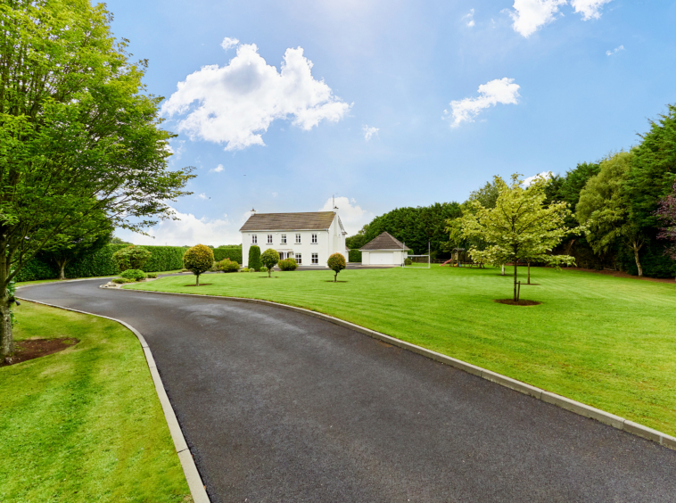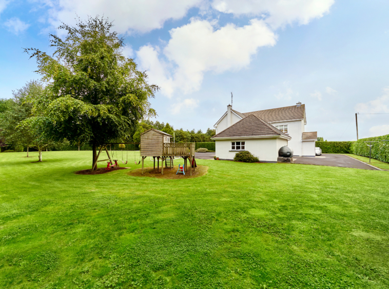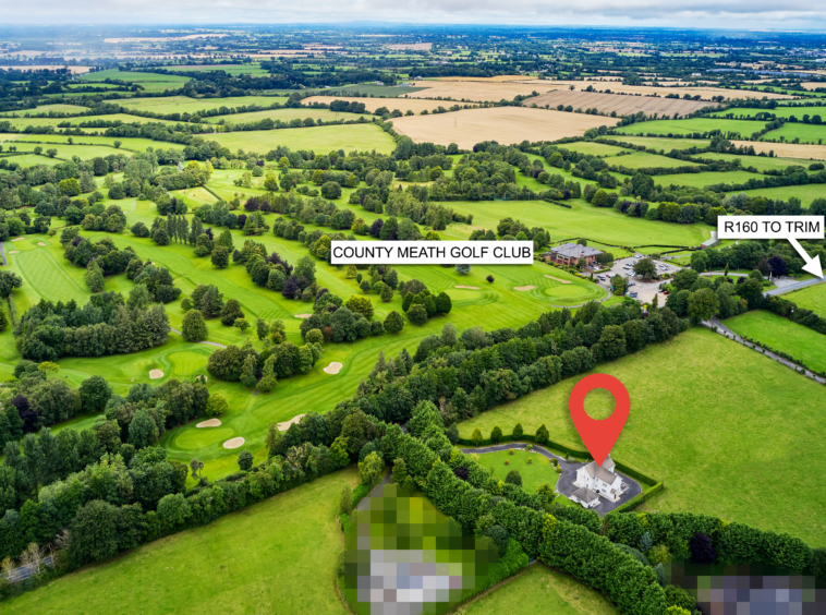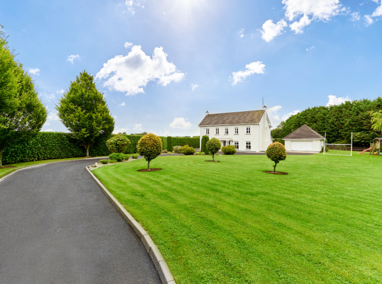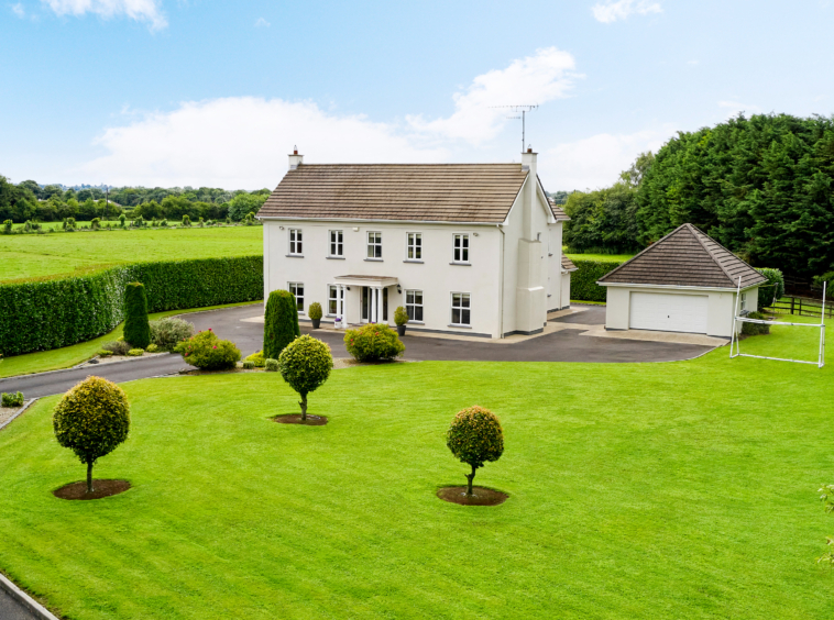 Standing on magnificently landscaped grounds extending to c. 1 acre, this is a charming and secluded spacious five-bedroom detached residence with detached garage. It enjoys wonderful privacy, bordered by mature trees, laurel hedging with beautiful views over the surrounding countryside and Co. Meath golf club. This home is exceptionally well presented both inside and out.
