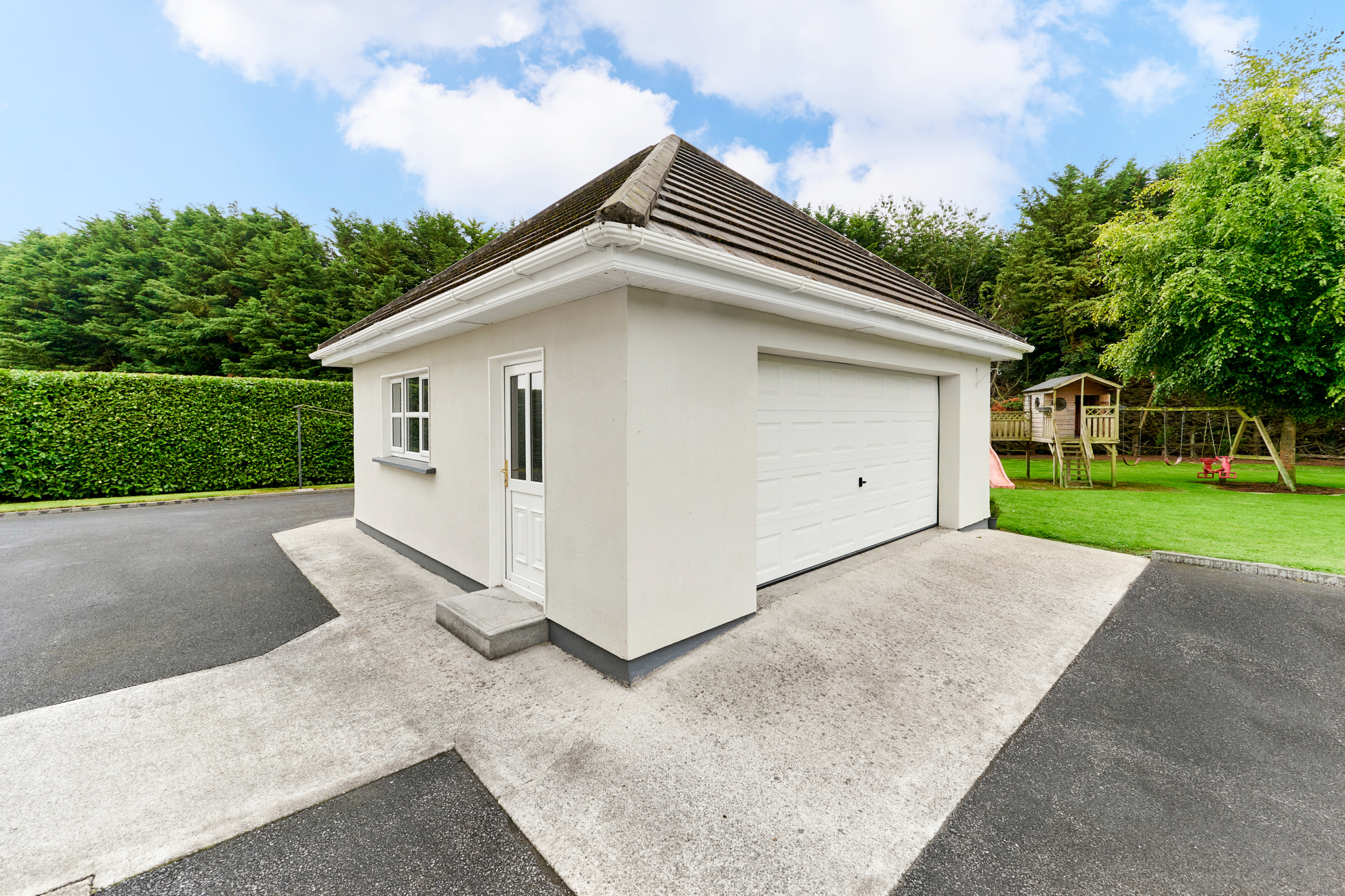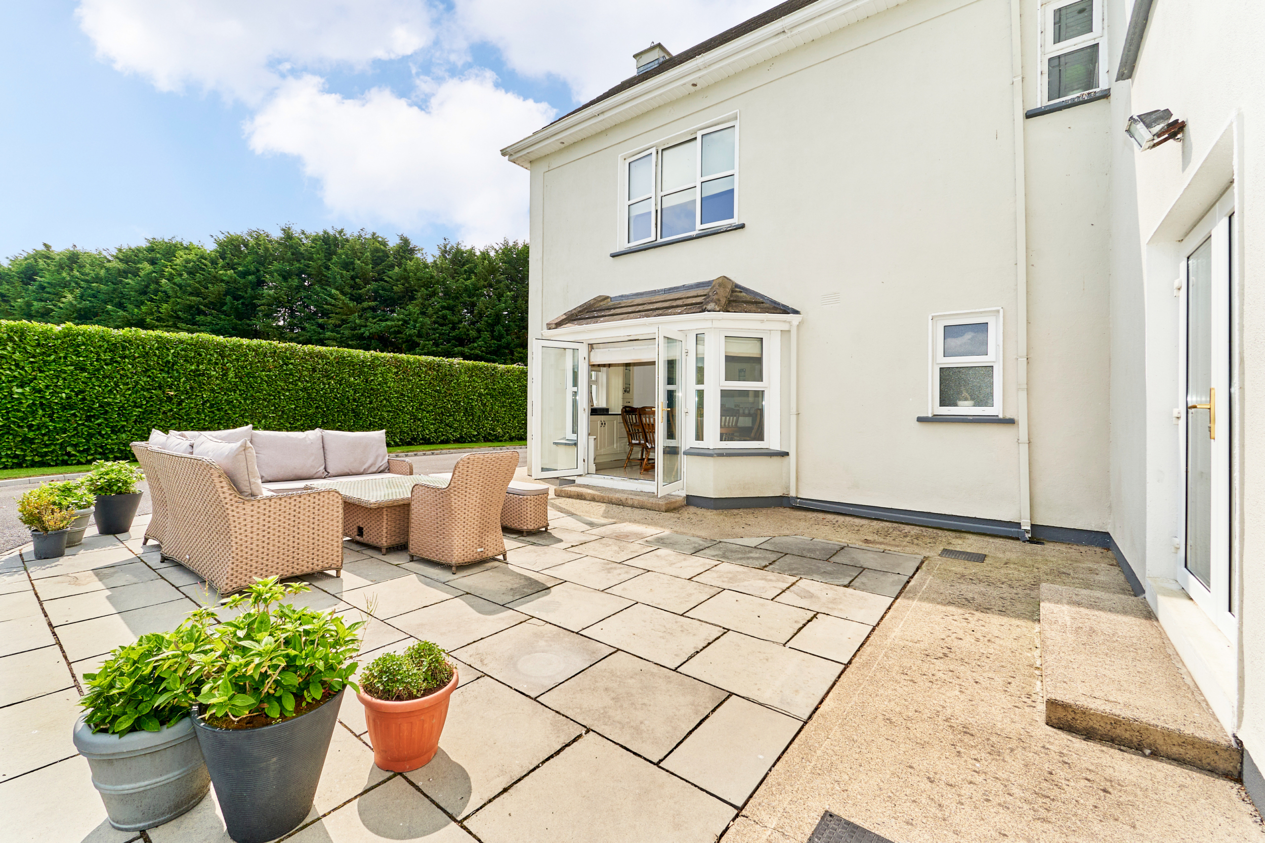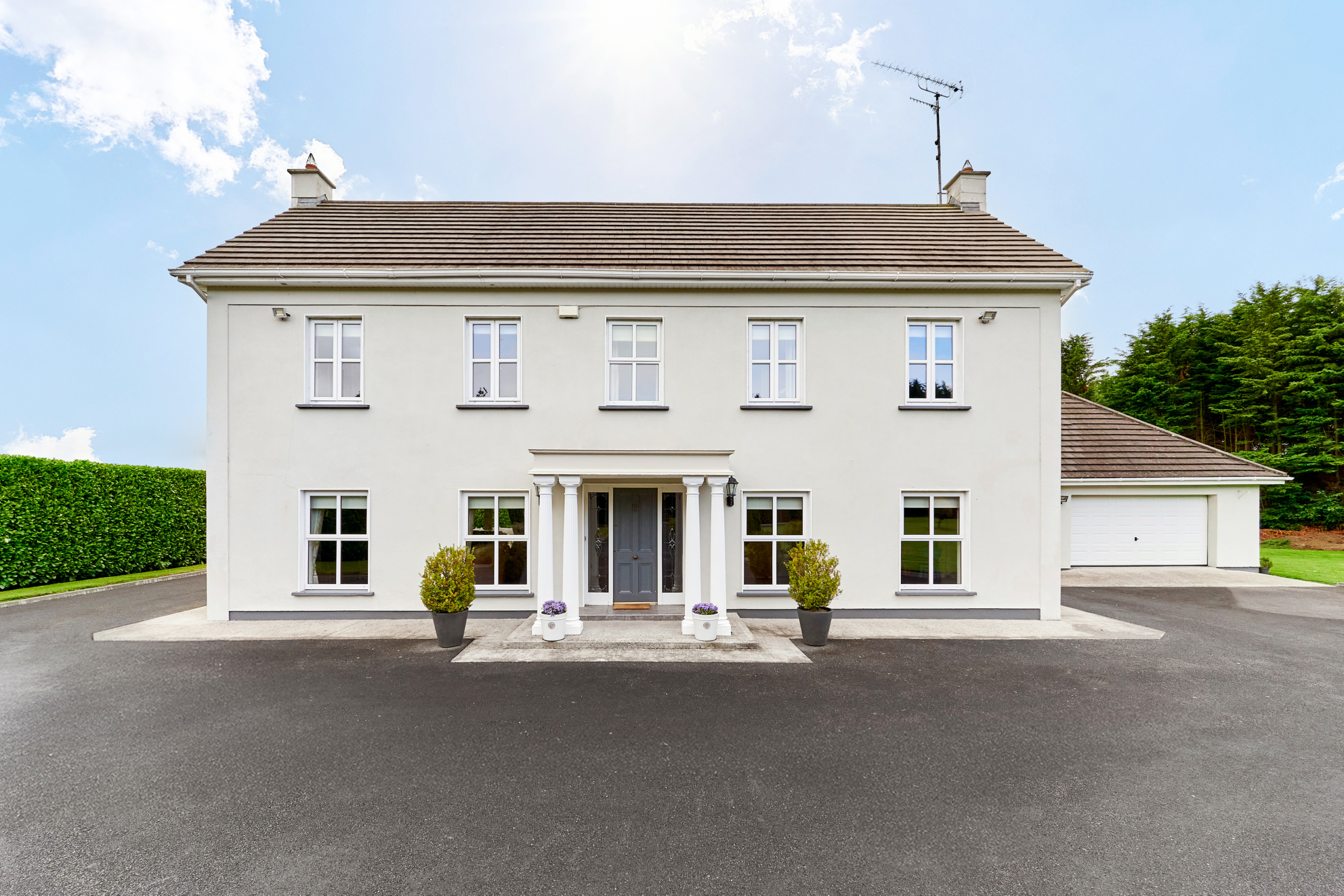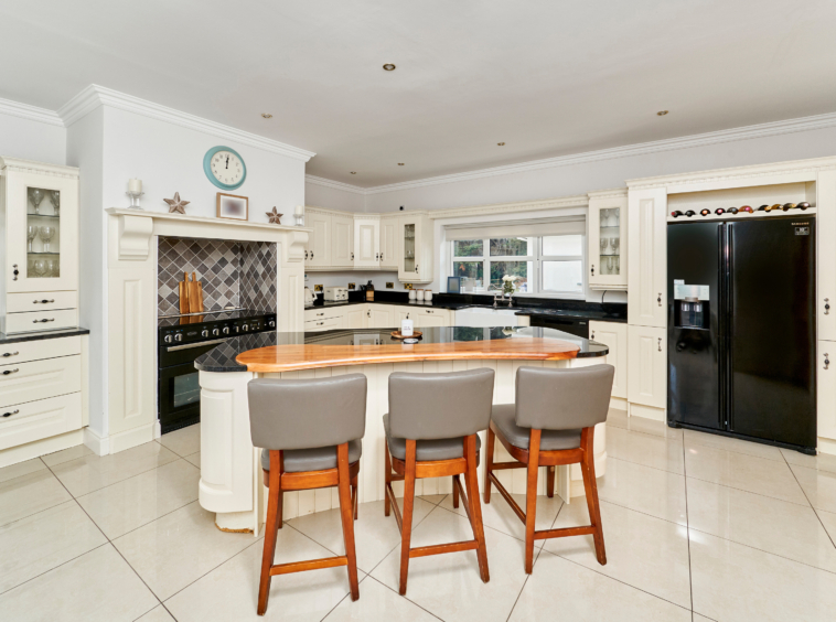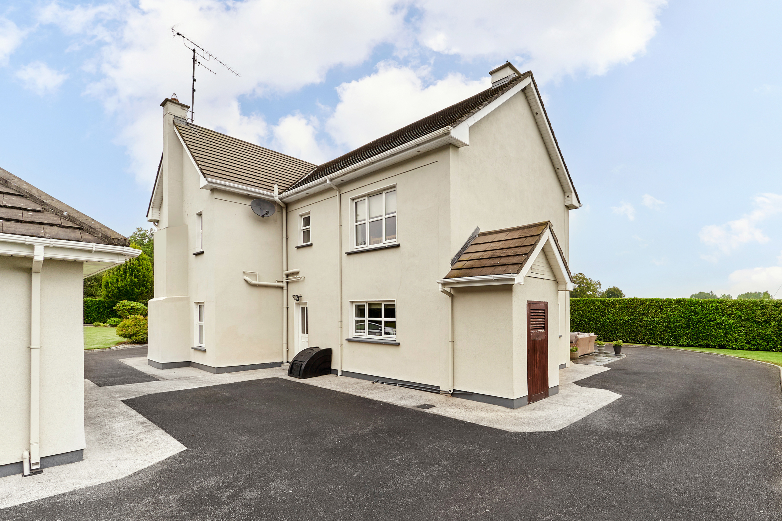 Standing on magnificently landscaped grounds extending to c. 1 acre, this is a charming and secluded spacious five-bedroom detached residence with detached garage. It enjoys wonderful privacy, bordered by mature trees, laurel hedging with beautiful views over the surrounding countryside and Co. Meath golf club. This home is exceptionally well presented both inside and out.