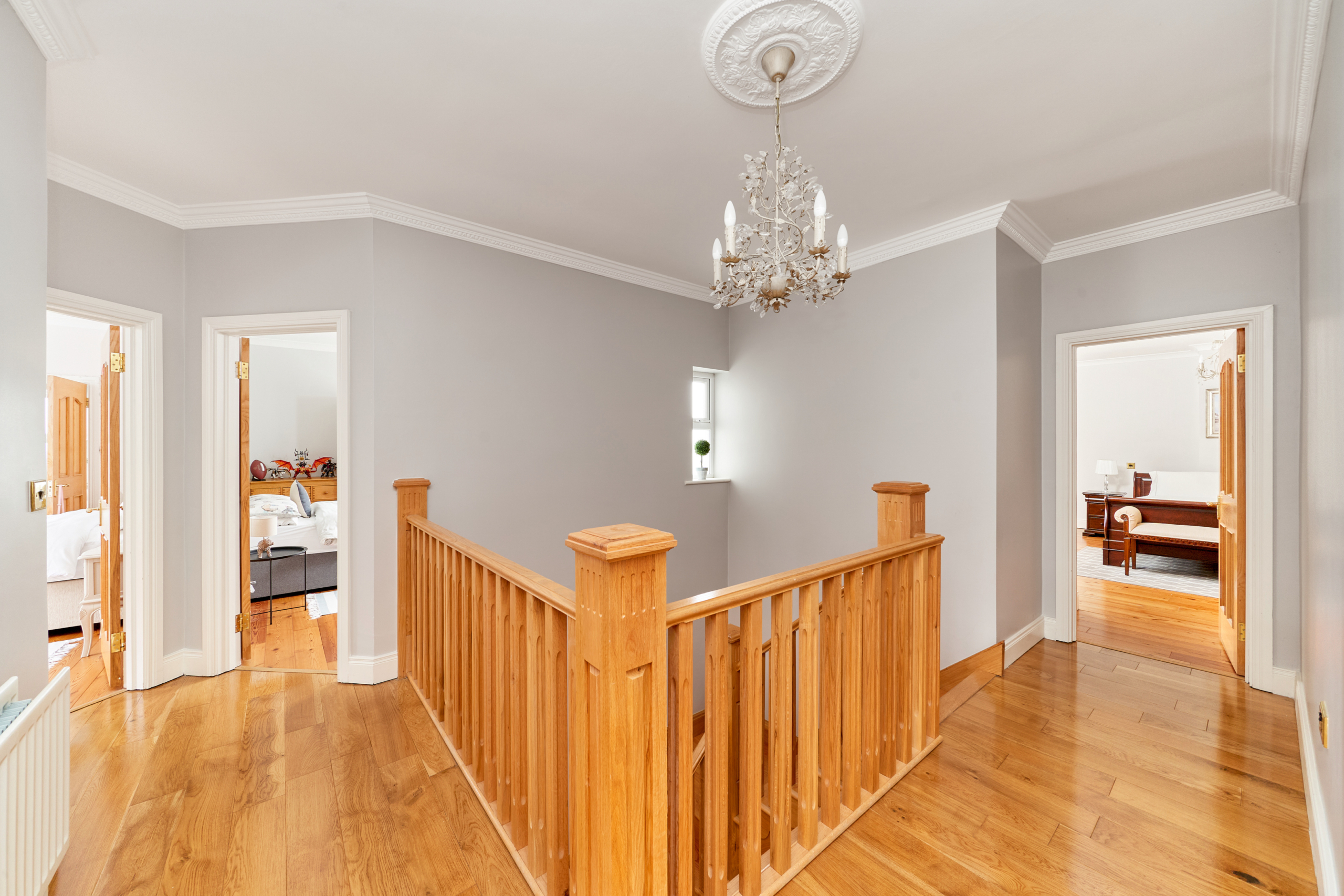 All bedrooms have fitted wardrobes with three having ensuite bathrooms. The main family bathroom is spacious with quality sanitary ware.