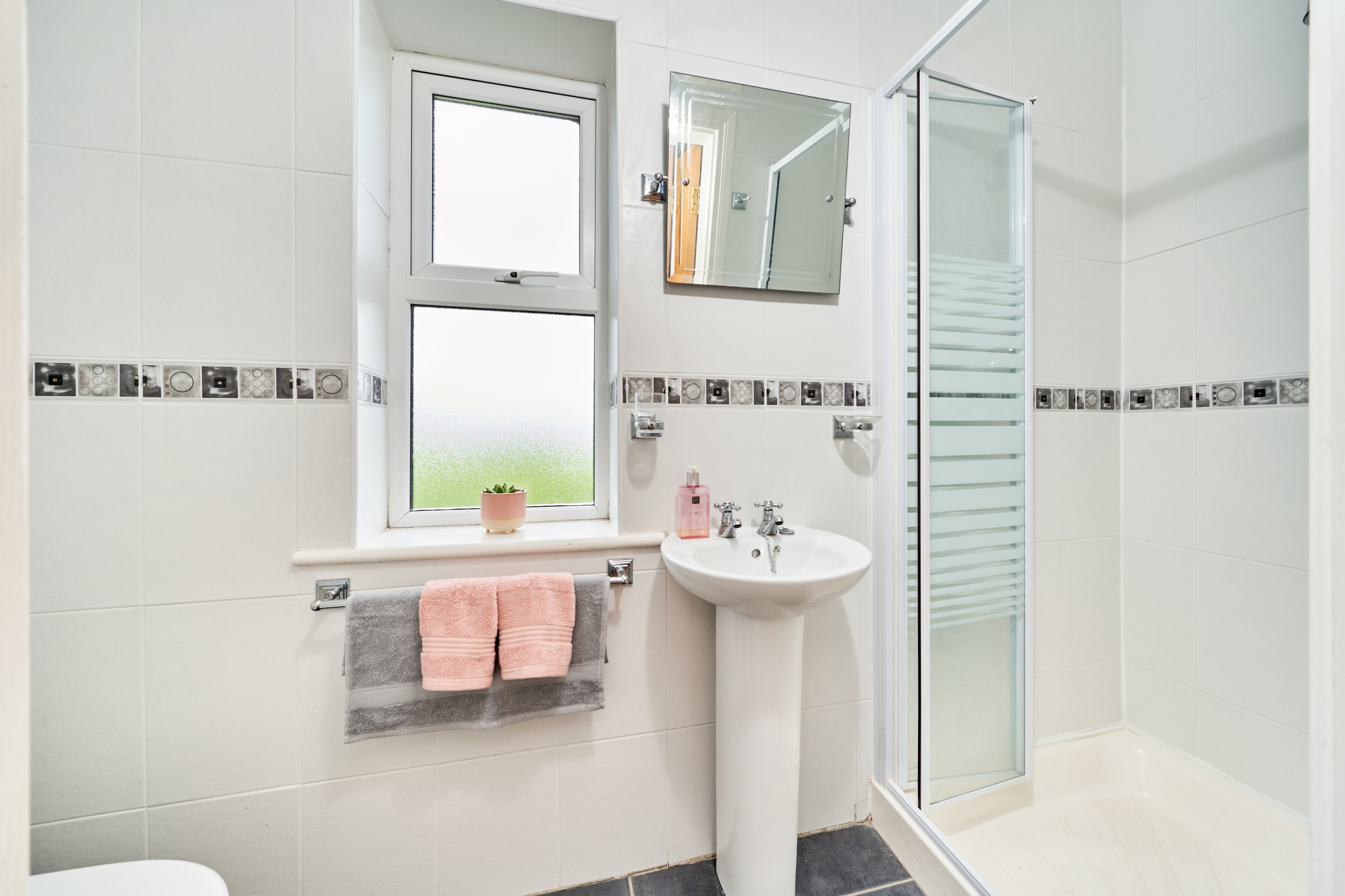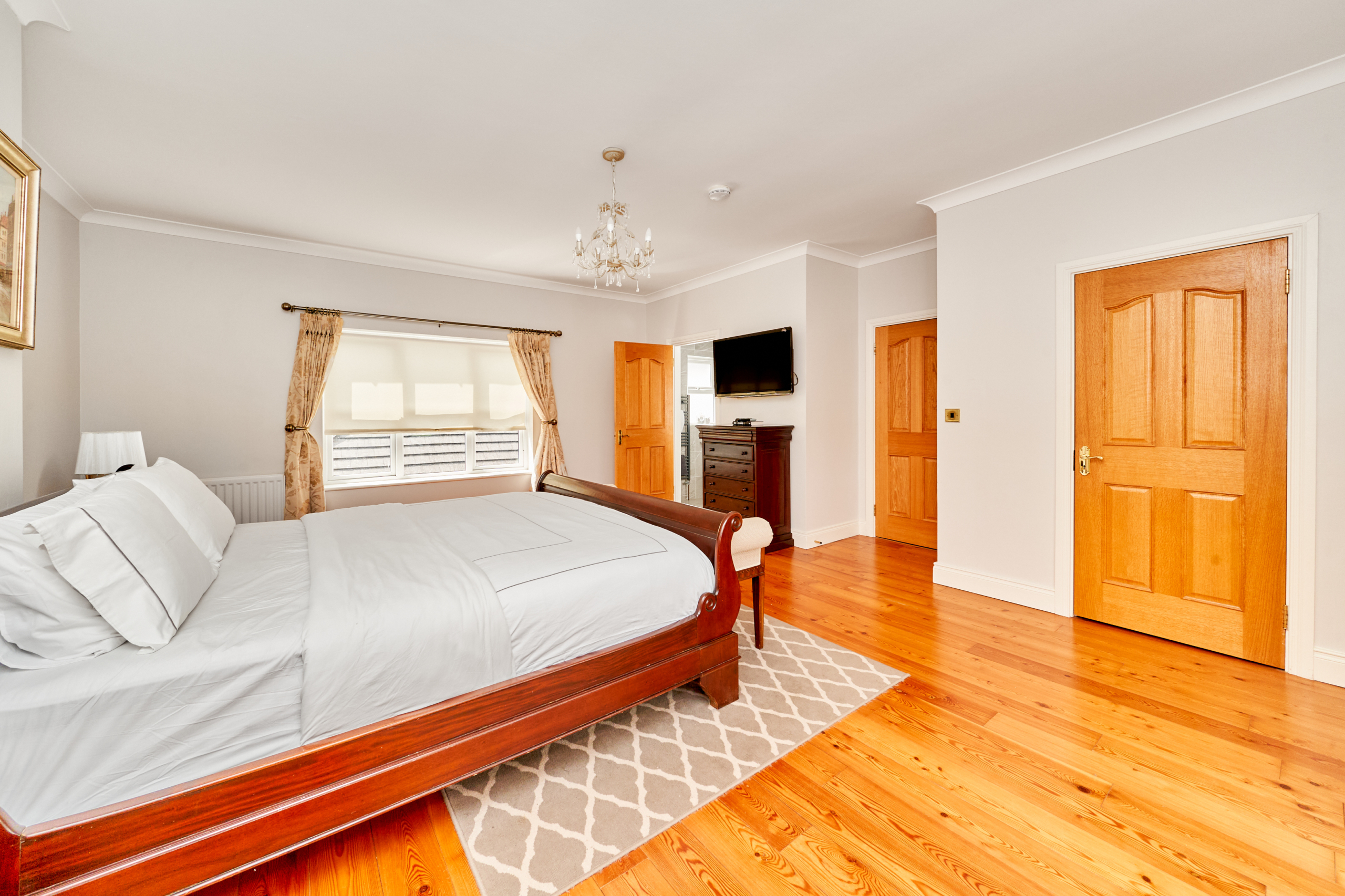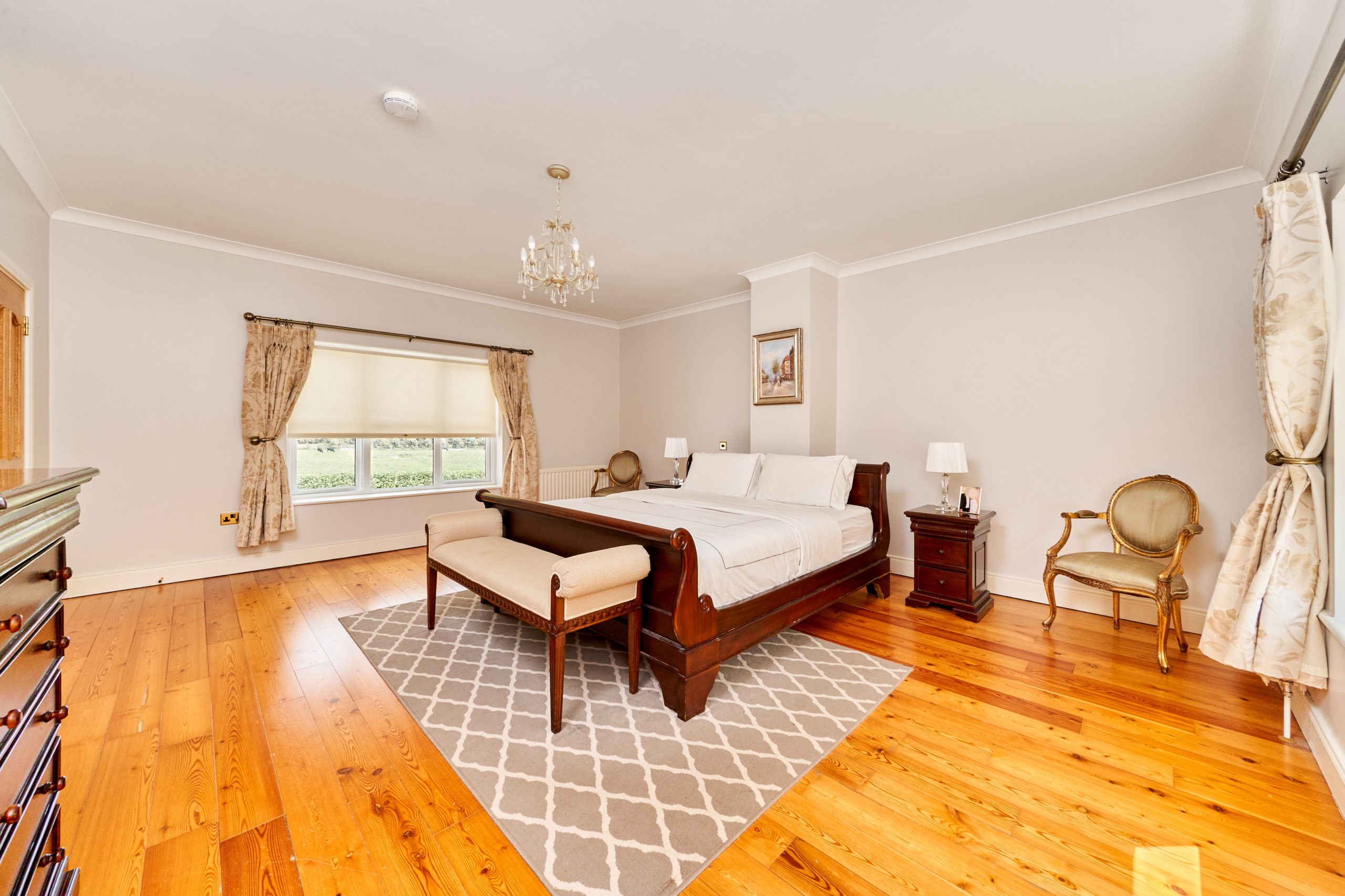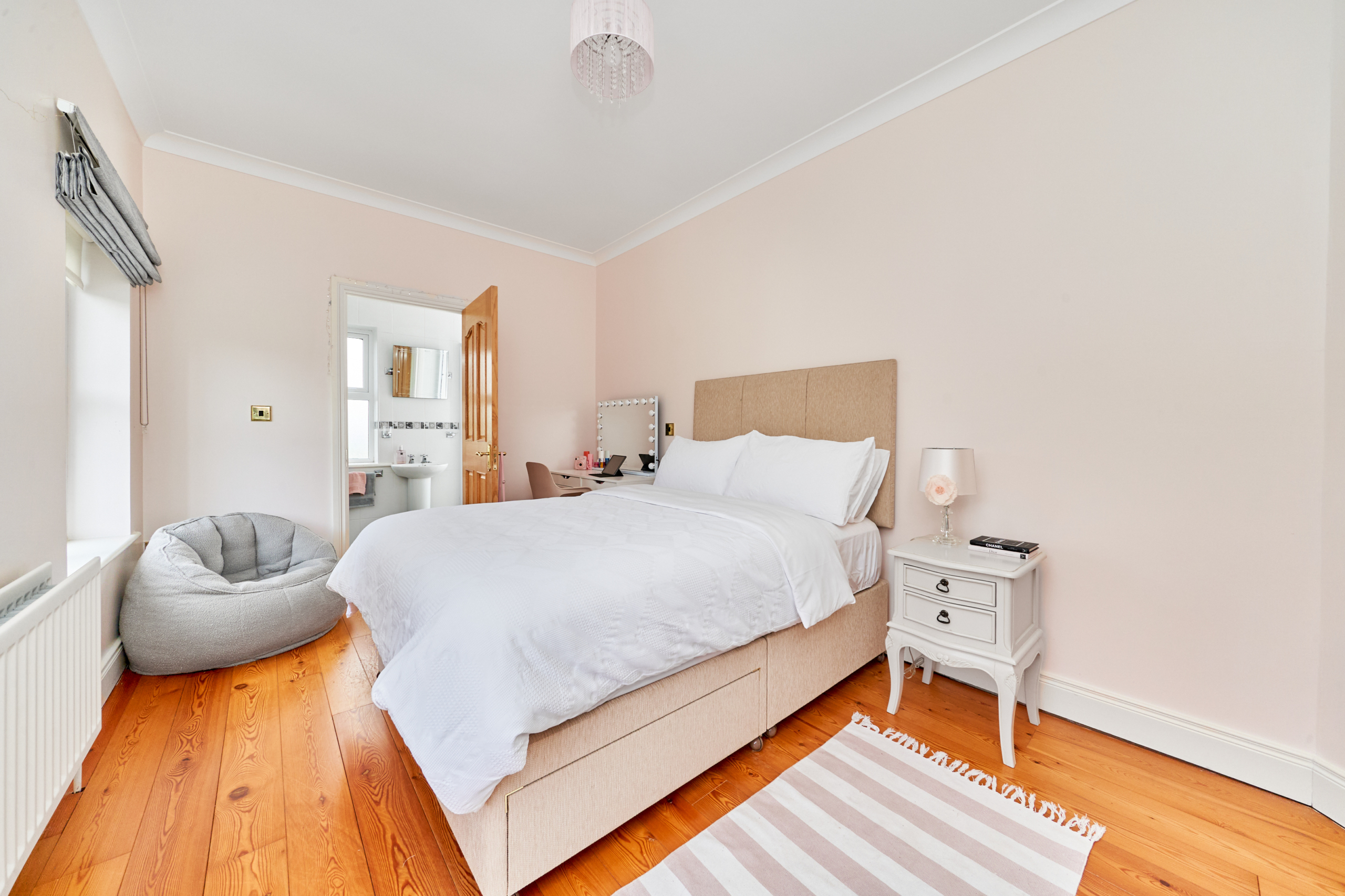 The Master bedroom is a very spacious with walk in wardrobe and tastefully decorated throughout. A well-appointed ensuite bathroom with W.C, W.H.B. and shower, fully tiled.